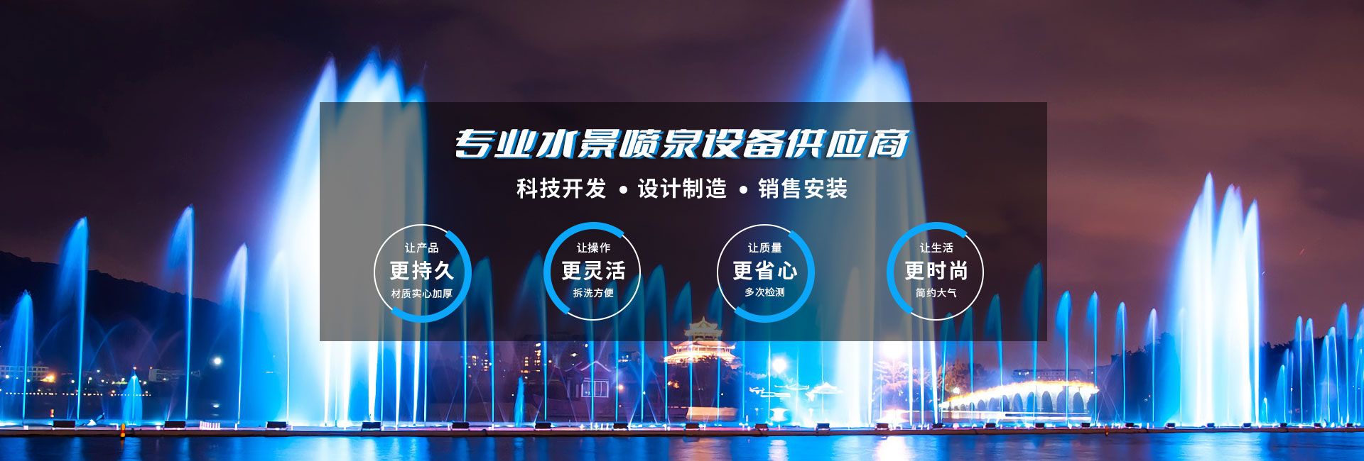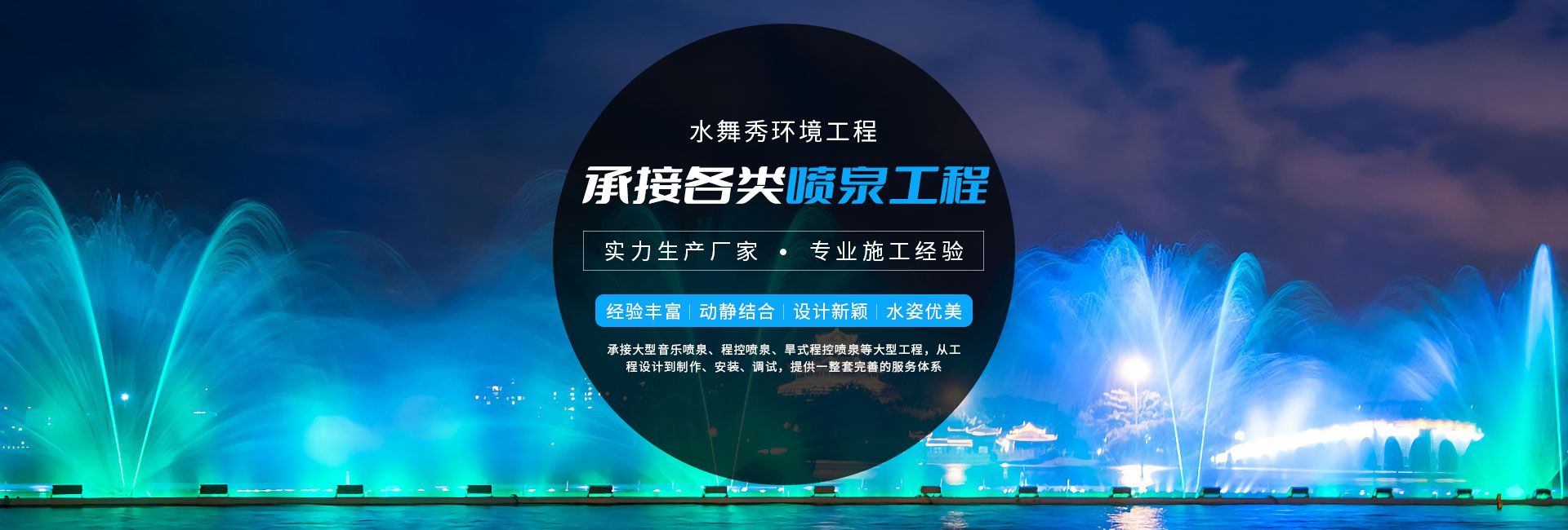 無(wú)錫市水舞秀環(huán)境工程有限公司,位于美麗的太湖之濱,著名的陶都--宜興。342省道附近,交通十分便利。本公司立志于弘揚(yáng)水文化,做好水文章,使噴泉水景集聲、光、水三維一體,營(yíng)造出更奇、更新、更美的人文景觀(guān)。公司在全國(guó)承接了大型音樂(lè)噴泉、程控噴泉、旱式程控噴泉等大型工程,從工程設(shè)計(jì)到制作、安裝、調(diào)試,提供一整套完善的服務(wù)體系只要客戶(hù)想到,我們一定能做到、做好。水舞秀噴泉匯聚了噴泉界一批有名望的設(shè)計(jì)專(zhuān)家,培養(yǎng)和造就了一大批富有實(shí)際經(jīng)驗(yàn),誠(chéng)實(shí)守信、吃苦耐勞的高素質(zhì)員工隊(duì)伍...